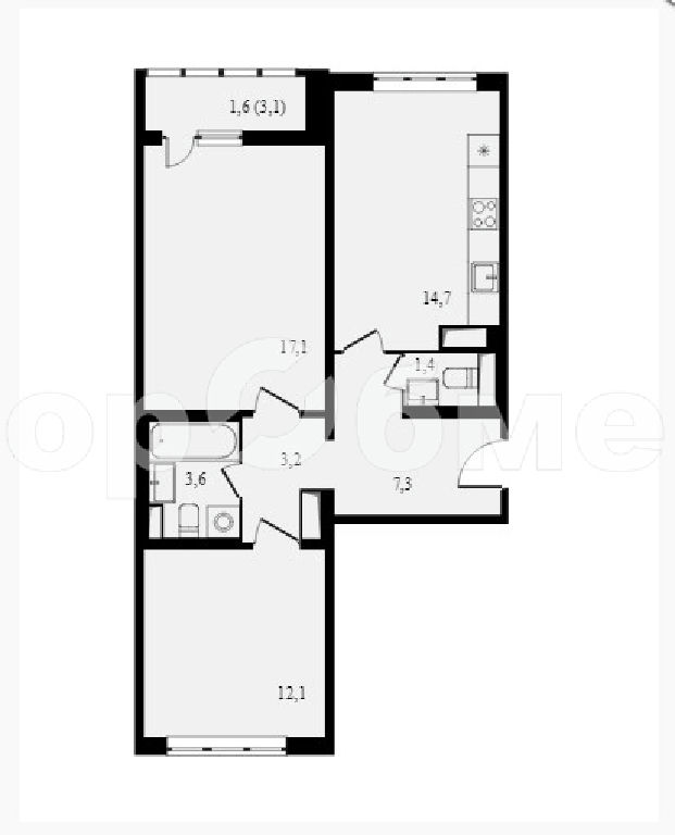 Общая: 57,1 м2